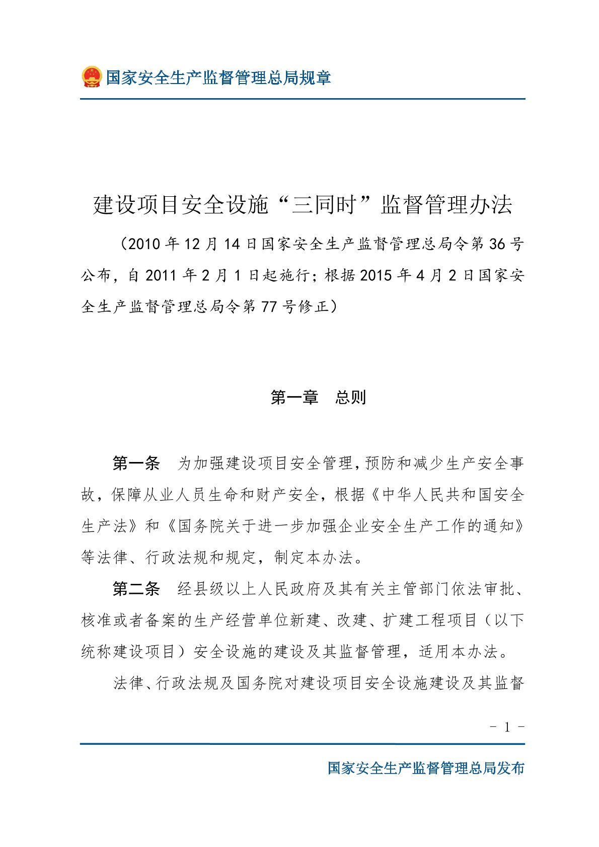 建設(shè)項(xiàng)目安全設(shè)施“三同時(shí)”監(jiān)督管理辦法